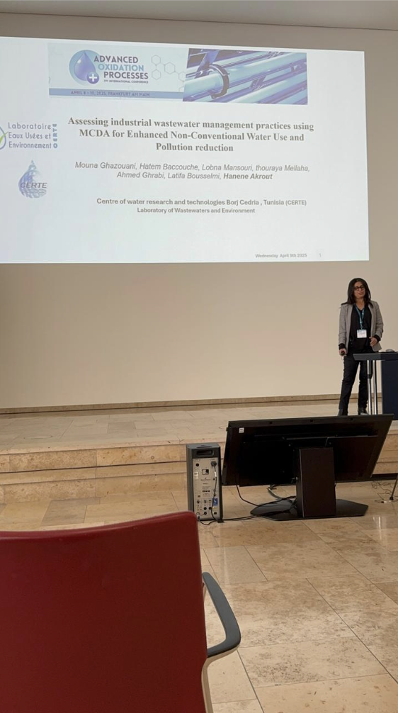 From 08 to 10 April, 2025, the AGREEMed Project Team in Tunisia (CERTE) participated in the International Conference, Advanced Oxidation Processes- Frankfurt am Main, organized by DECHEMA Germany.